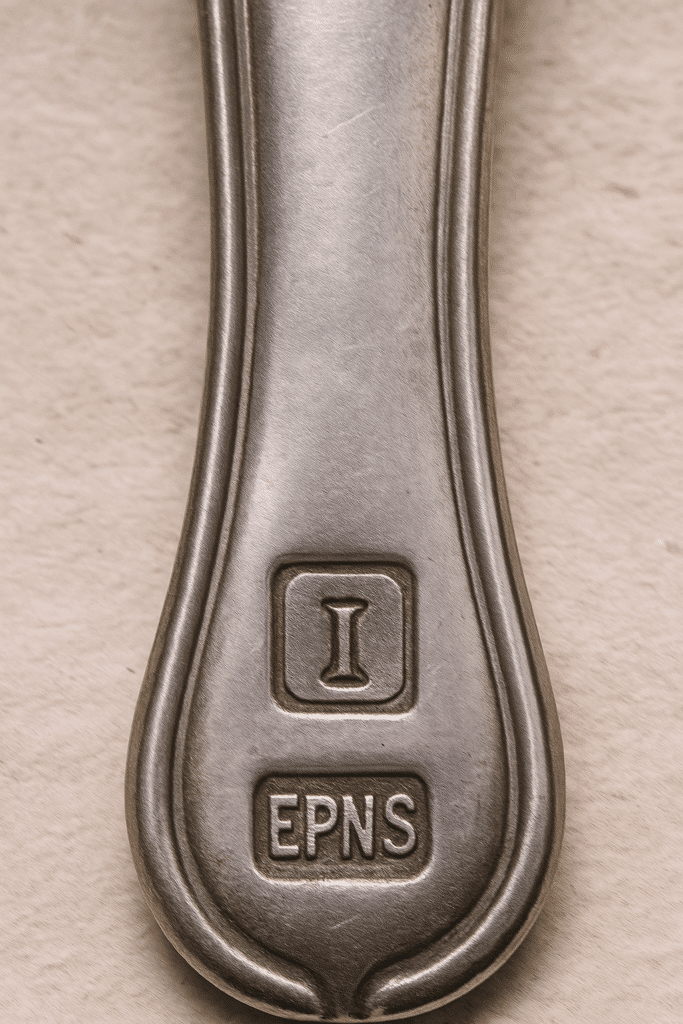 Sur les couverts anglais ou anglo-saxons, on trouve souvent les inscriptions « EP » (Electro Plated) ou « EPNS » (Electro Plated Nickel Silver).